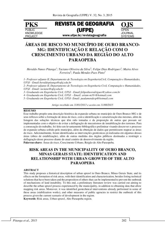 Áreas de risco no município de Ouro Branco-MG: identificação e relação com o crescimento urbano da região do Alto Paraopeba