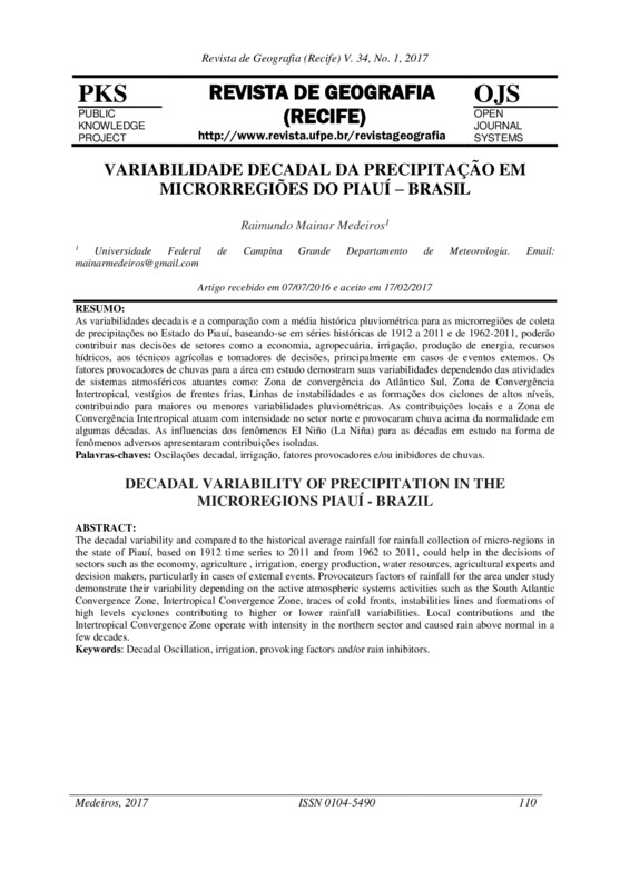 Variabilidade decadal da precipitação em Microrregiões do Piauí – Brasil