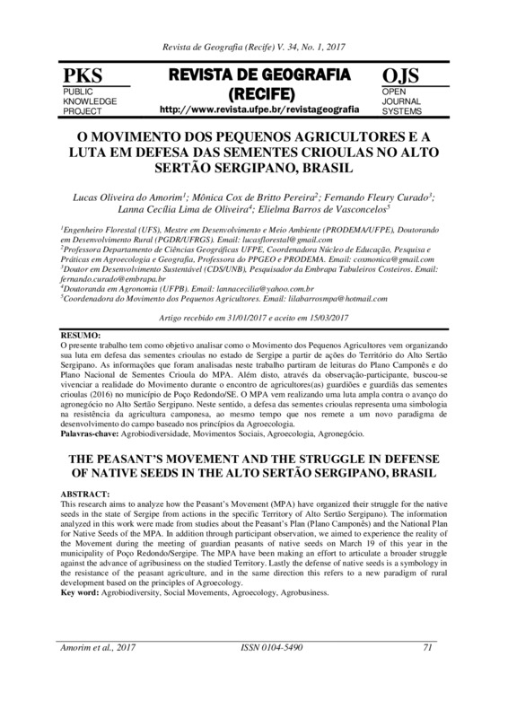 O movimento dos pequenos agricultores e a luta em defesa das sementes crioulas no Alto Sertão Sergipano, Brasil