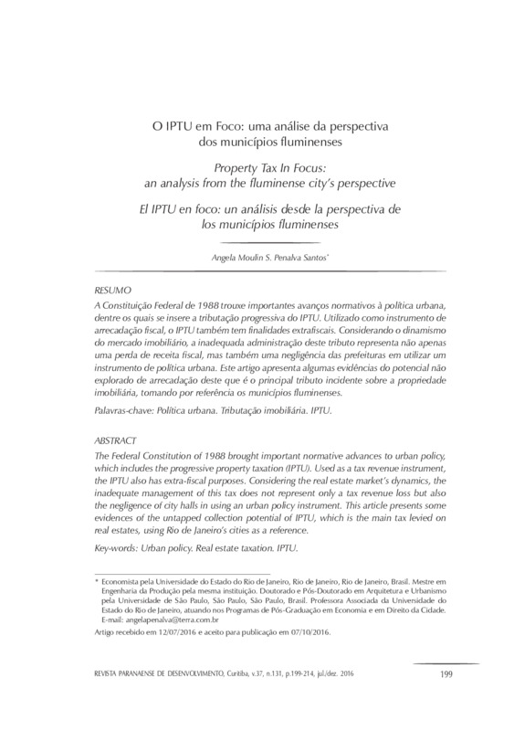 A Constituição Federal de 1988 trouxe importantes avanços normativos à política urbana, dentre os quais se insere a tributação progressiva do IPTU. Utilizado como instrumento de arrecadação fiscal, o IPTU também tem finalidades extrafiscais. Considerando o dinamismo do mercado imobiliário, a inadequada administração deste tributo representa não apenas uma perda de receita fiscal, mas também uma negligência das prefeituras em utilizar um instrumento de política urbana. Este artigo apresenta algumas evidências do potencial não explorado de arrecadação deste que é o principal tributo incidente sobre a propriedade imobiliária, tomando por referência os municípios fluminenses.