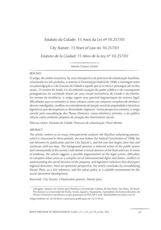 Estatuto da Cidade: 15 Anos da Lei nº 10.257/01