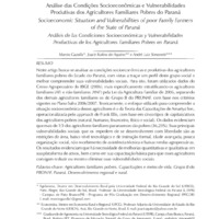 Neste artigo busca-se analisar as condições socioeconômicas e produtivas dos agricultoresfamiliares pobres do Estado do Paraná, com vistas a traçar um perfil deste grupo social e melhor compreender suas vulnerabilidades sociais. Para isto, foram utilizados dados doCenso Agropecuário do IBGE (2006), mais especificamente estratificando os agricultoresfamiliares (AF) e não familiares (ANF) pela Lei da Agricultura Familiar de 2006, separandodos demais agricultores familiares os do Grupo B do PRONAF, com base nos critériosvigentes no Plano Safra 2006/2007. Teoricamente, o enfoque utilizado para compreender asituação socioeconômica desses agricultores é o da Teoria das Capacitações de Amartya Sen, operacionalizada pelo approach de Frank Ellis, com base em cinco tipos de capitais/ativos dos agricultores pobres (natural, humano, financeiro, físico e social). Os dados evidenciam que mais de 1/3 dos agricultores familiares paranaenses são pobres (36,25%). Suas principais vulnerabilidades sociais que os impedem de se desenvolverem com liberdade são as restrições de área, baixo nível tecnológico e de instrução formal, idade avançada, pouca organização social, não recebimento de assistência técnica e baixas rendas agropecuárias. Os resultados evidenciam que há necessidade de melhorias quantitativas e qualitativas em sua plataforma de ativos, bem como em sua capacitação básica para que esses agricultores consigam reduzir ou mesmo eliminar suas vulnerabilidades sociais.
