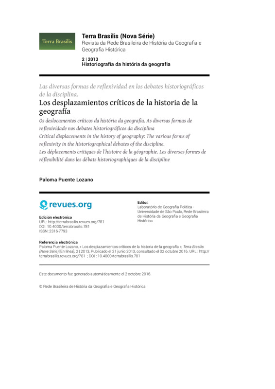 Los desplazamientos críticos de la historia de la geografía