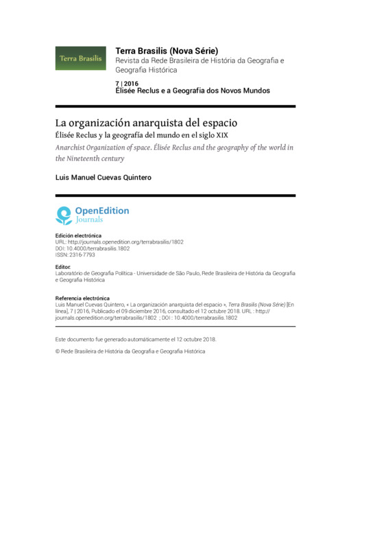La organización anarquista del espacio. Élisée Reclus y la geografía del mundo en el siglo XIX