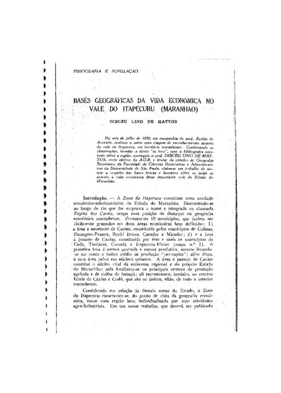 Bases geográficas da vida econômica no Vale do Itapecuru (Maranhão)