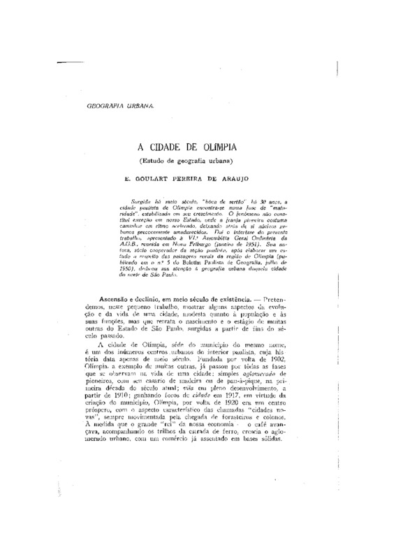 Ascensão e declínio, em meio século de existência. •— Pretendemos, neste pequeno trabalho, mostrar alguns aspectos da evolução e da vida de uma cidade, modesta quanto à população e às suas funções, mas que retrata o nascimento e o estágio de muitas outras do Estado de São Paulo, surgidas a partir de fins do século passado.