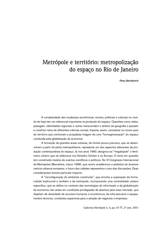 - Metrópole e território: metropolização do espaço no Rio de Janeiro
