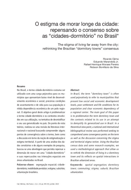 No Brasil, o termo cidade-dormitório costuma ser utilizado com uma carga pejorativa para os municípios que apresentam baixo nível de desenvolvimento econômico e social, precárias condições de assentamento e de vida para sua população e nítida dependência econômica de um polo regional. O objetivo geral deste artigo é problematizar o termo cidade-dormitório e os contextos envolvidos em sua utilização, na tentativa de desmistificar o seu uso generalizado no país. Do ponto de vista teórico, realizou-se uma revisão da literatura internacional e nacional buscando compreender alguns pontos de convergência sobre o termo, bem como a discussão em torno da noção de estigmatização e estigma territorial. A partir de uma análise dos dados censitários e de alguns exemplos de pesquisa, buscou-se uma abordagem que permita repensar a dimensão de morar em uma “cidade-dormitório” e suas repercussões nas interações espaciais em áreas urbanizadas no Brasil.