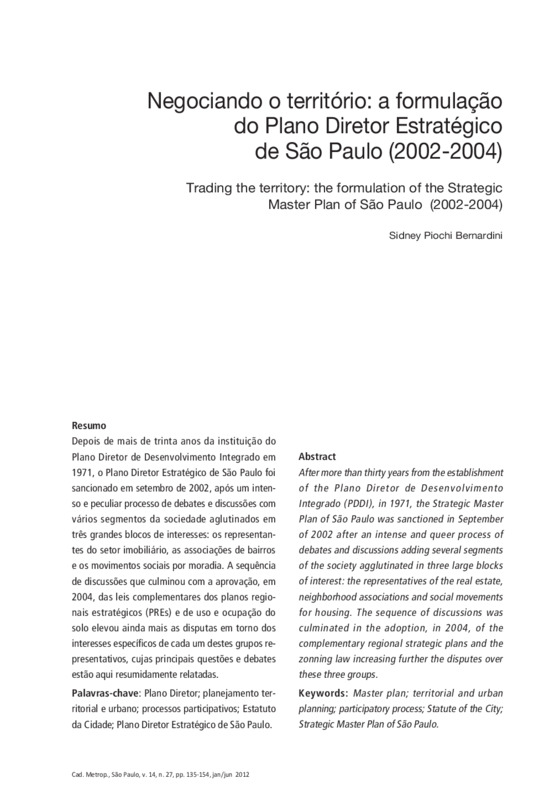 Negociando o território: a formulação do Plano Diretor Estratégico de São Paulo (2002-2004)