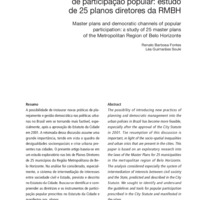 Planos diretores e canais democráticos de participação popular: estudo de 25 planos diretores da RMBH
