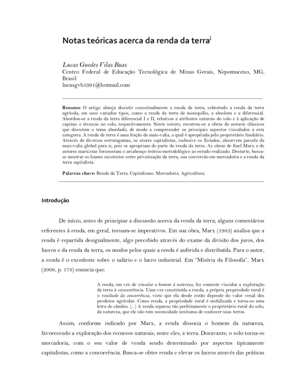 Notas Teóricas Acerca da Renda da Terra | Élisée - Revista de Geografia da UEG (ISSN 2316-4360)