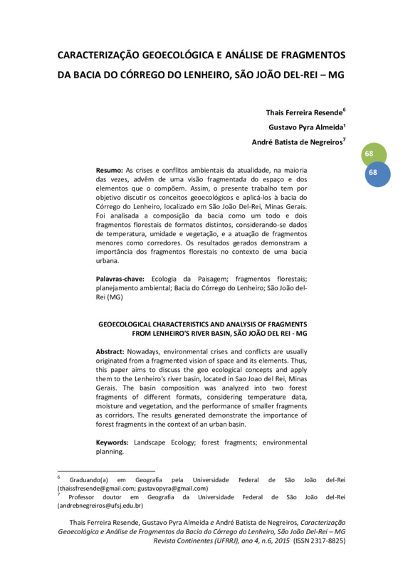 Caracterização Geoecológica e Análise de Fragmentos da Bacia do Córrego do Lenheiro, São João Del-Rei – MG