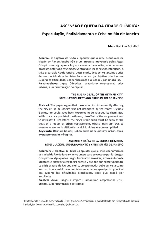 cidade do Rio de Janeiro não é um processo provocado pelos Jogos