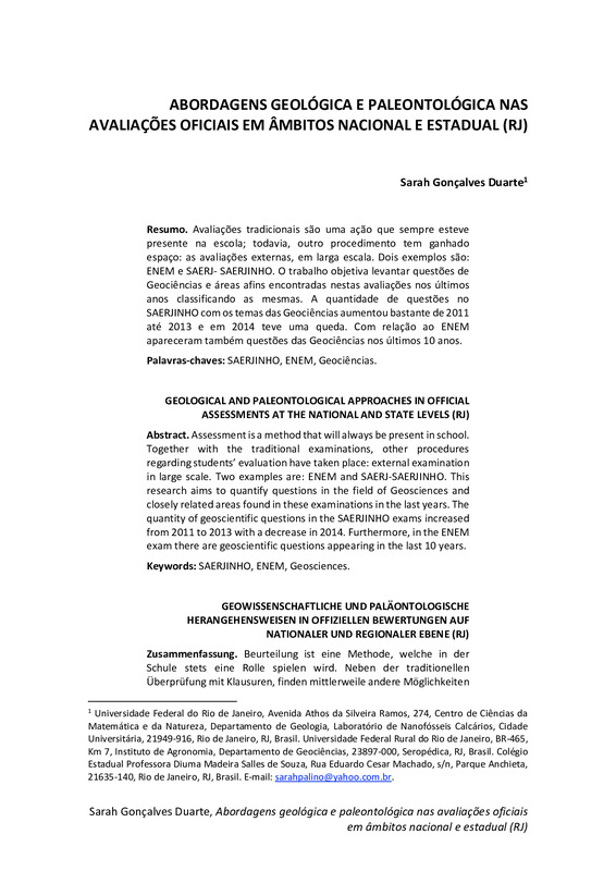 - Abordagens Geológica e Paleontológica nas Avaliações Oficiais em Âmbitos Nacional e Estadual (RJ)