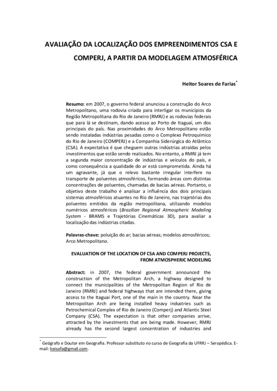 Avaliação da Localização dos Empreendimentos CSA e COMPERJ,a partir da Modelagem Atmosférica