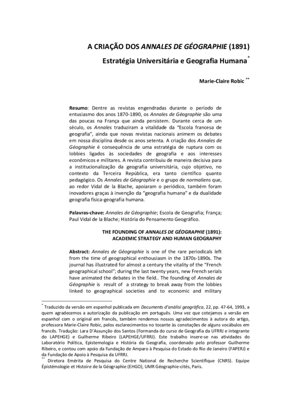 pedagógico. Os Annales de Géographie e o grupo de normaliens que,