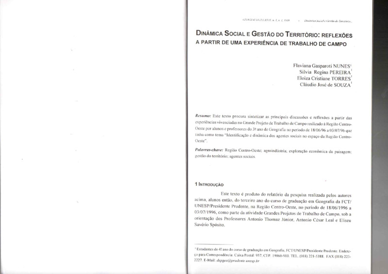 Dinâmica social e gestão do território: reflexões a partir de uma experiênca de trabalho de campo