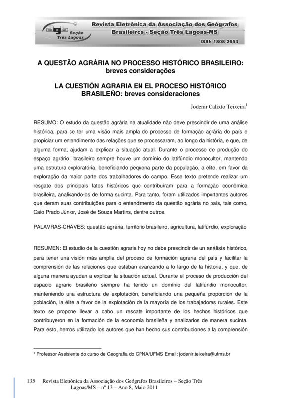 A QUESTÃO AGRÁRIA NO PROCESSO HISTÓRICO BRASILEIRO