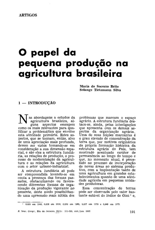 - O PAPEL DA PEQUENA PRODUÇÃO NA AGRICULTURA BRASILEIRA
