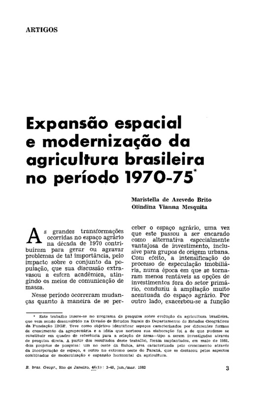 - EXPANSÃO ESPACIAL E MODERNIZAÇÃO DA AGRICULTURA BRASILEIRA NO PERÍODO 1970-75