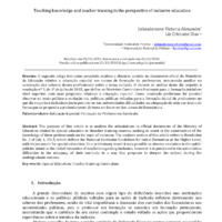 Resumo: O seguinte artigo tem como propósito analisar o discurso contido no documento oficial do Ministério da Educação relativo a educação especial nos cursos de formação de professores, procurando auxiliar na construção dos saberes destes profissionais sobre o tema inclusão. O recorte de análise deste diz respeito à resolução nº 2, de 1º de julho de 2015, que define as Diretrizes Curriculares Nacionais para a formação inicial em nível superior, com suas propostas relativas à educação especial. Como resultado preliminar foi possível observar no texto político a evolução nas políticas públicas voltadas para a formação inicial de professores no que diz respeito a inclusão,todavia percebe-se nas universidades dificuldades na adequação de seus currículos de forma que se proponha aprofundamento do tema no decorrer dos cursos de licenciatura.