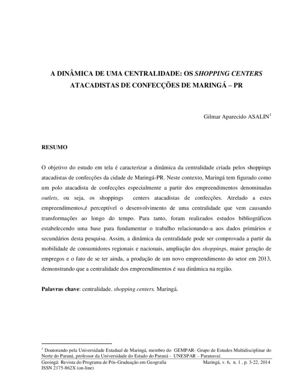 A DINÂMICA DE UMA CENTRALIDADE: OS SHOPPING CENTERS ATACADISTAS DE CONFECÇÕES DE MARINGÁ – PR