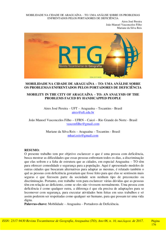 MOBILIDADE NA CIDADE DE ARAGUAÍNA – TO: UMA ANÁLISE SOBRE OS PROBLEMAS ENFRENTADOS PELOS PORTADORES DE DEFICIÊNCIA