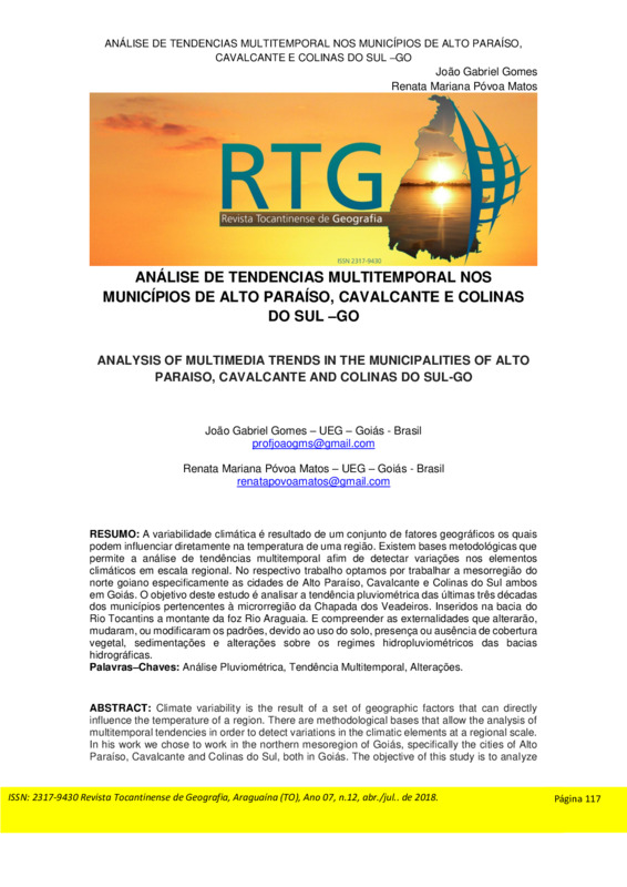 ANÁLISE DE TENDENCIAS MULTITEMPORAL NOS MUNICÍPIOS DE ALTO PARAÍSO, CAVALCANTE E COLINAS DO SUL –GO