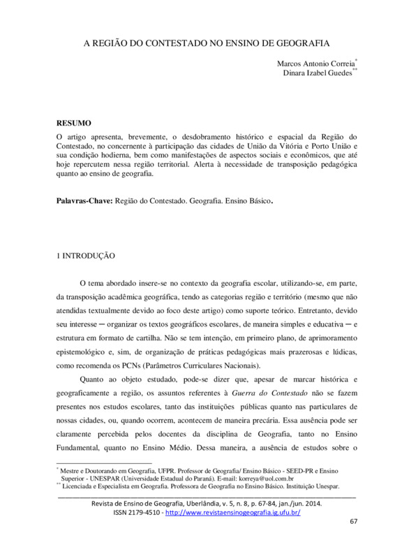 A REGIÃO DO CONTESTADO NO ENSINO DE GEOGRAFIA
