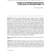 impacto causado pela chegada de um conjunto habitacional; também foram apuradas imobiliárias