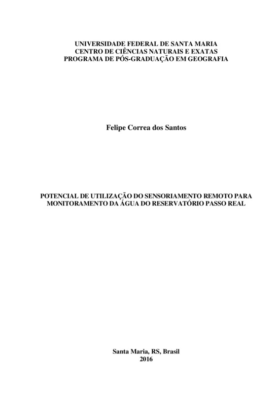 POTENCIAL DE UTILIZAÇÃO DO SENSORIAMENTO REMOTO PARA MONITORAMENTO DA ÁGUA DO RESERVATÓRIO PASSO REAL
